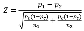 En este sentido, el estadístico de la prueba Z para la comparación de las proporciones viene dado por: