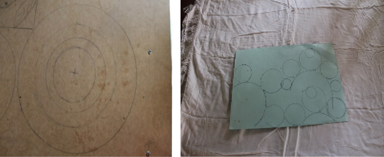Figura 3. Diseño circular, molde en mesa. Composición de figuras geométricas, molde en cartulina