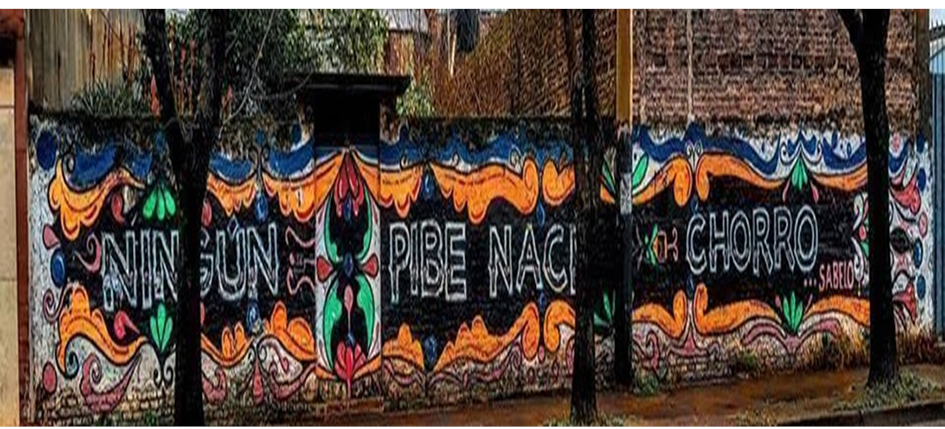 Nota. Fuente: Fotografía de los autores del artículo. Mural “Ningún pibe nace chorro” en Barrio República de la Sexta, Rosario, Provincia de Santa Fe-Argentina