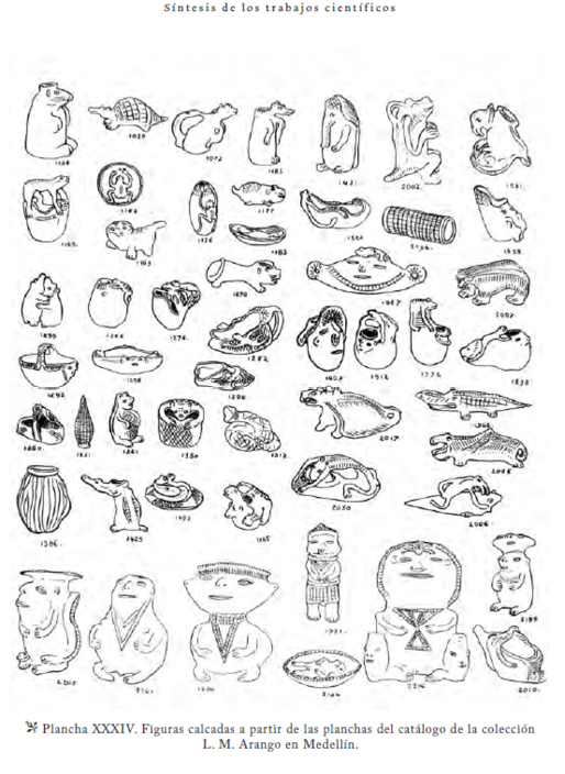 De otra parte, en el texto de Ernesto Restrepo Tirado titulado, Ensayo etnográfico y arqueológico de la Provincia de los Quimbayas en el Nuevo Reino de Granada (1892), aparece una descripción que hace alusión a unos “figurines de tierra”, poco apreciables si se les compara con el trabajo orfebre de nuestros ancestros indígenas, refiriéndose a la extraña cerámica que estaba observando que era Alzate.