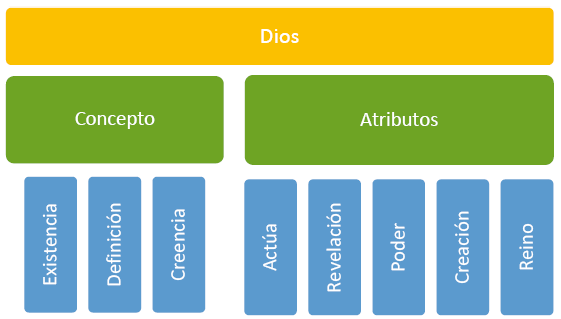 El análisis, que a través de la codificación se hace, muestra cómo el nodo central que articula la reflexión de la producción académica en relación con el primer artículo de la fe cristiana es la categoría Dios. Esta categoría es el objeto de estudio que nos ocupa, en cuanto al contenido de la fe cristiana es una exposición dogmática o sistemática de la realidad que significa ese concepto. A la categoría citada se asocian dos nodos que dimensionan su alcance, a saber: el concepto de Dios y los atributos de Dios.