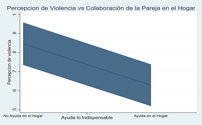 Respecto a la correlación con la variable “el hombre ayuda en el hogar”, se encontró que aquellas mujeres que ven a un hombre que colabora en el hogar, hace que su percepción de la violencia disminuya; esto debido a que el involucramiento del hombre en el hogar lo perciben como un factor protector, pues los hombres que ayudan en el hogar tienden a ser menos violentos (figura 4).
